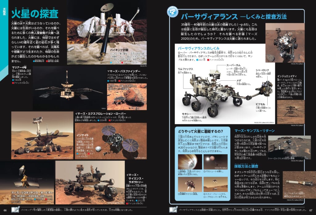 見ているだけでわくわくする、ロケットや探査機もたくさん掲載。近年話題のスペースX社のロケットや衛星技術なども!