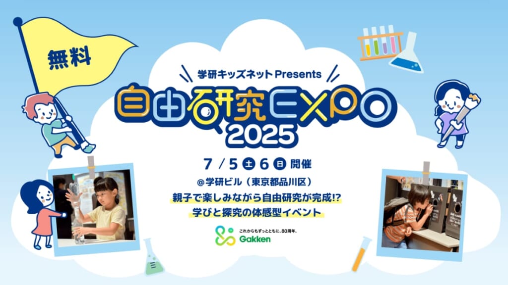 オンラインでの情報提供だけでなく、リアルな場で研究することの楽しさに触れられる「自由研究EXPO 2025」を、学研ビル(東京都品川区)にて2025年7月5日(土)・6日(日)に開催します。スペシャルゲストによる「わくわくステージショー」や、企業・団体とコラボした体験型ワークショップ・展示を通して、子どもたちの知的好奇心を刺激し、夏休みの自由研究を応援します。