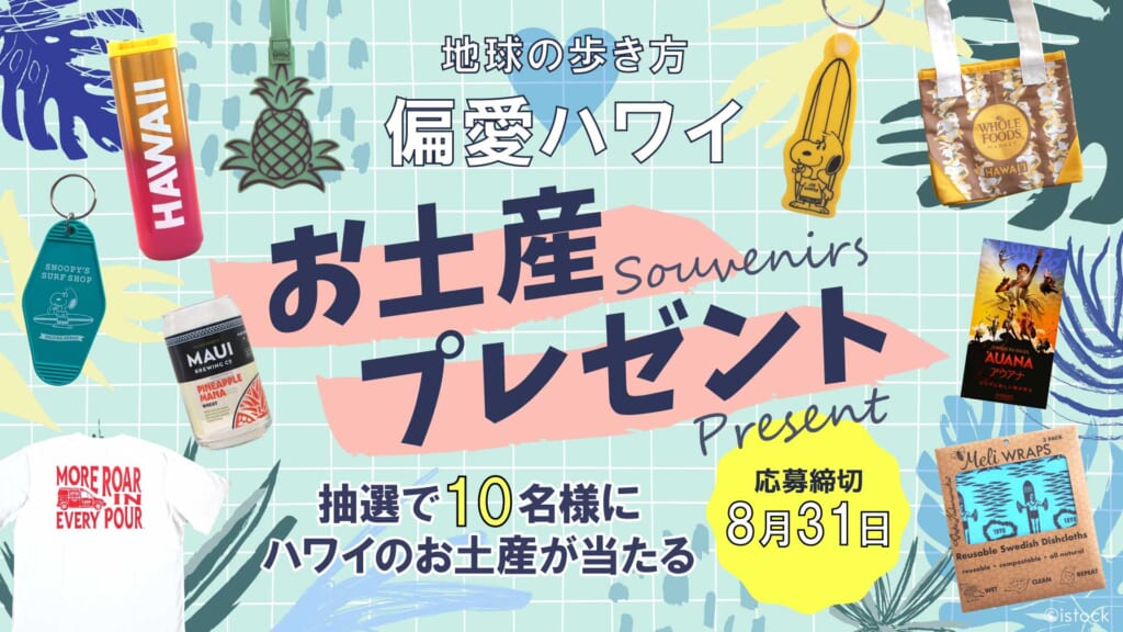 特集を記念して、「地球の歩き方」編集者がハワイで見つけたとっておきのお土産を、10名様にプレゼント。雑貨からアパレルまで、使うだけでアロハな気分が盛り上がるものばかり。応募期間は2025年8月31日まで。ふるってご応募ください!