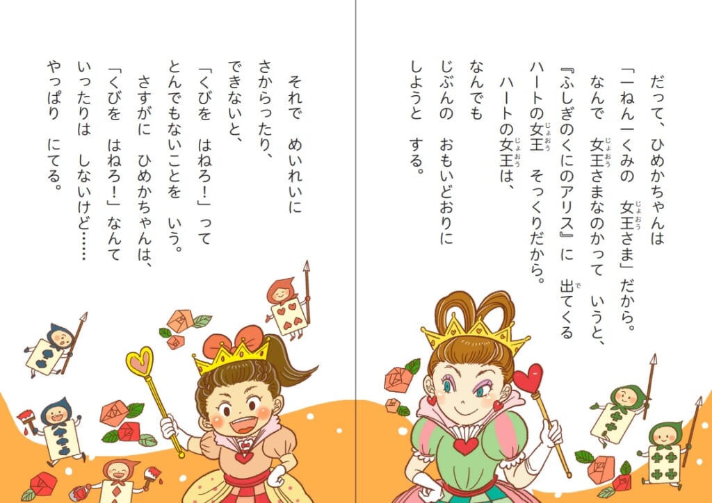 ――つむぎは小学校1年生。同じクラスのひめかちゃんは、わがままで、自由きままで、まるで女王さまみたい。そのせいで、毎日じけんがおこってばかりで大めいわく。だけど、楽しくて、なんだかにくめない!