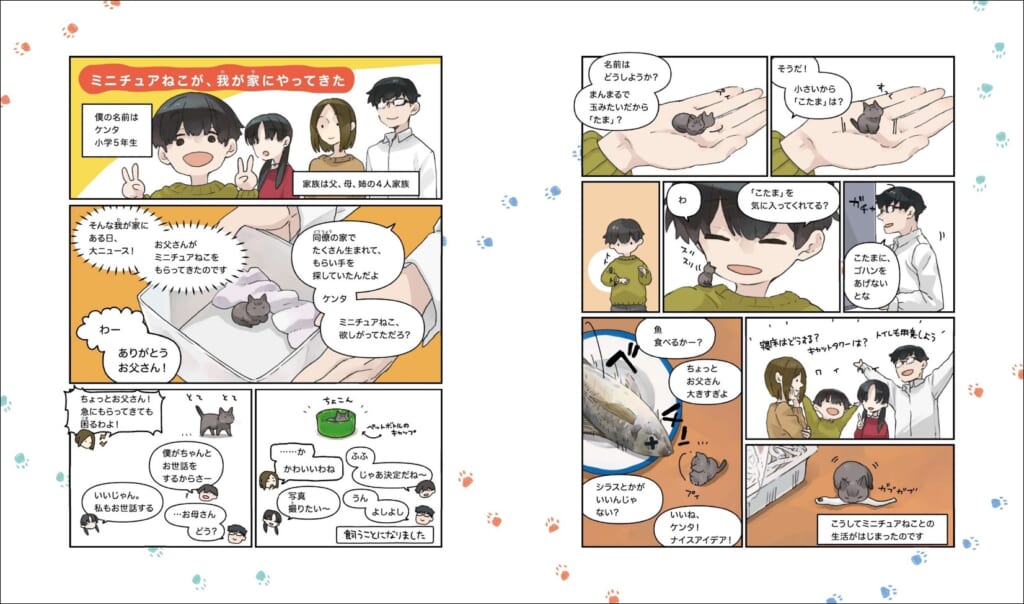 ▲ほのぼのしたマンガで「ミニチュアねこ」との生活を紹介。