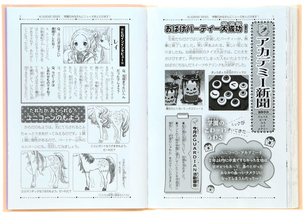物語を読み終えると、ユニコーン・アカデミーの「学園新聞」のページが!