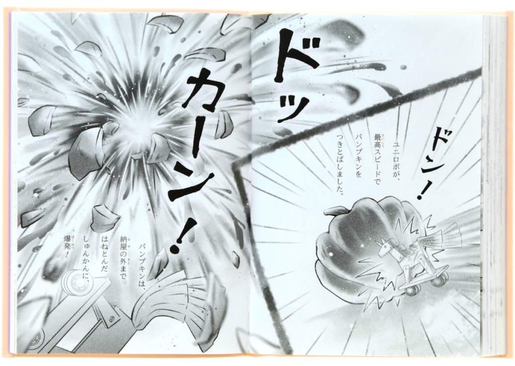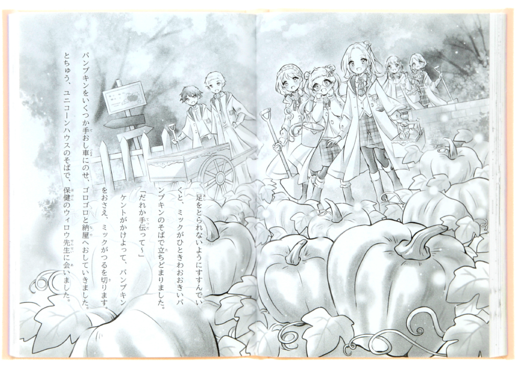 ▲中ページより。校舎のかくし部屋発見シーンや、ジャンボパンプキンの畑シーン、パンプキン爆発シーンなども、見のがせない迫力!
