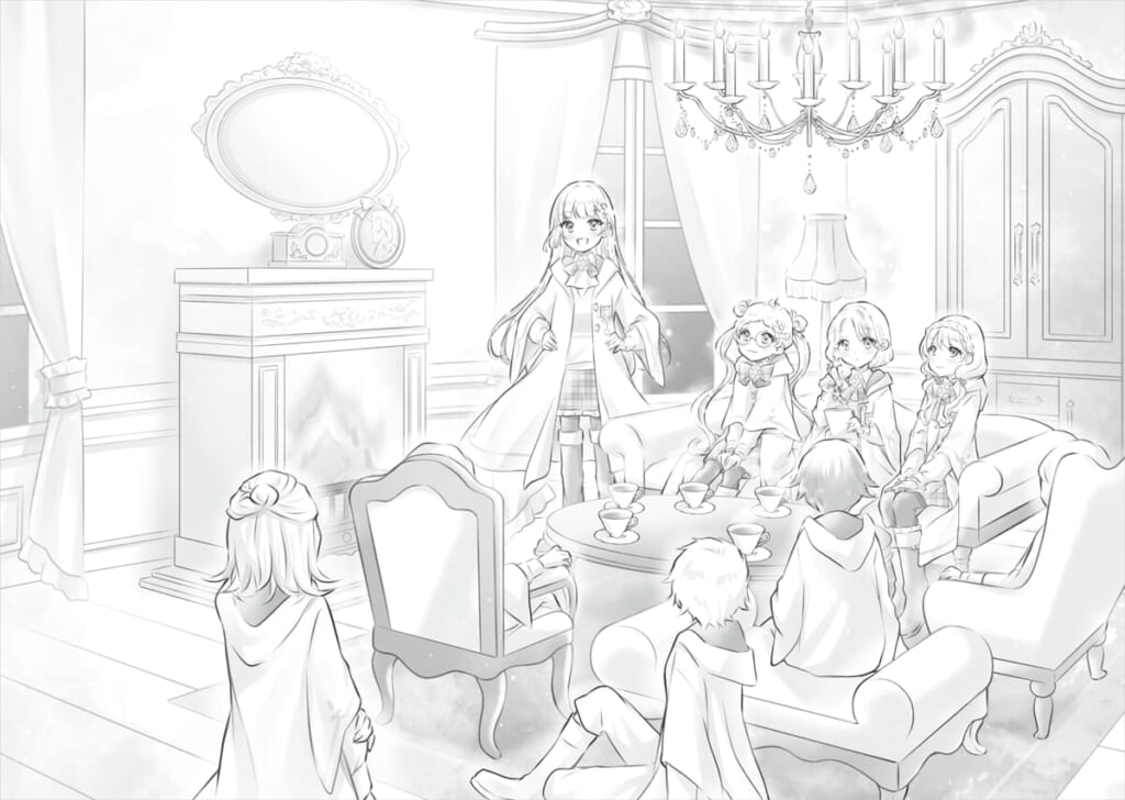 ▲学園寮のリビングでパーティーの作戦会議。男の子たちも手伝ってくれることになって、盛り上がります!