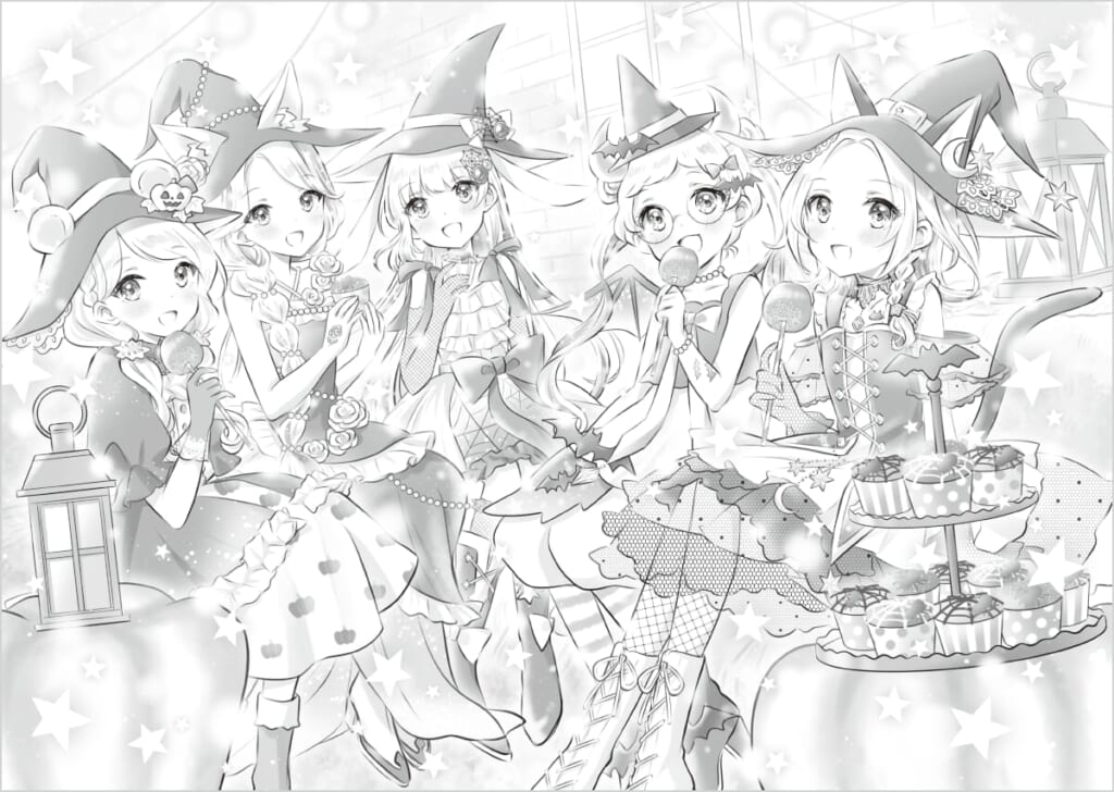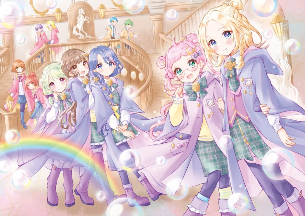 「今回は、ハロウィンを思わせる「おばけパーティー」がイベントとして登場します。普段着も魔法使いのローブ風にし、魔法の学園らしさを盛り上げました。ユニコーンの騎乗シーンはもちろん、各シーンですそやそでがロマンチックにはためくように、こだわって描いています。パーティーのときの衣装は、魔女帽子やケモ耳などメンバー共通のテーマを決めたうえで、ルームメイトそれぞれの個性に合うドレスをデザインしました」