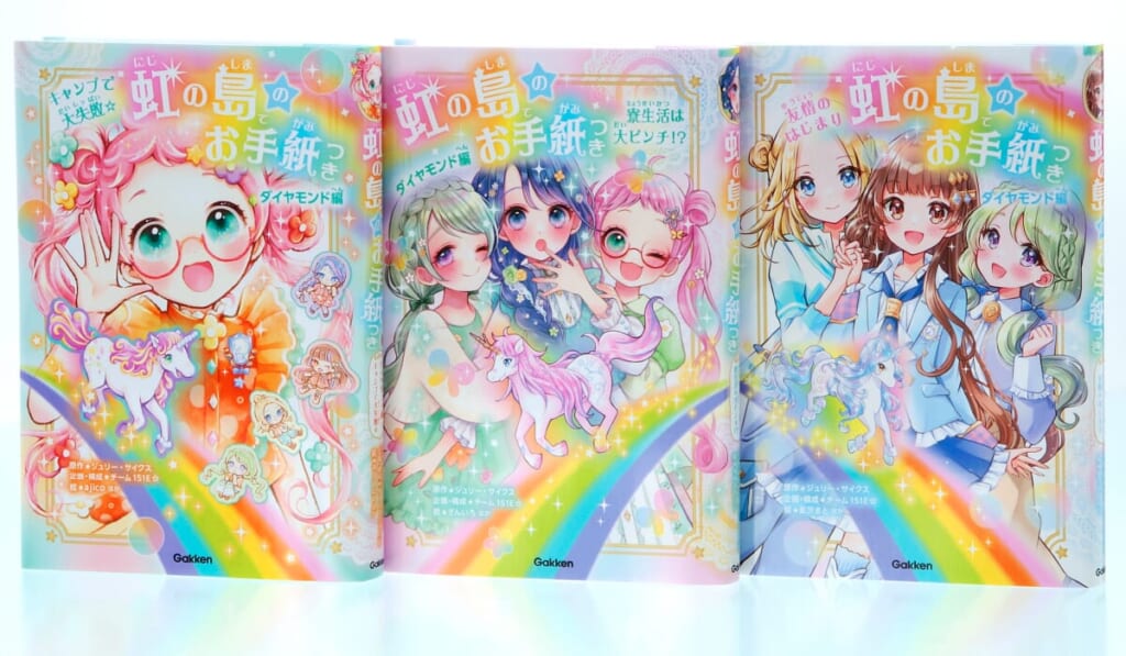 「虹の島のお手紙つき」(Gakken)シリーズの立ち上げメンバーとなり、今回の新作ほか『ダイヤモンド編 友情のはじまり』『アメジスト編 最高のパートナー』のさし絵も担当。また、全巻に関連する虹の島や学園の舞台設定も担当している。