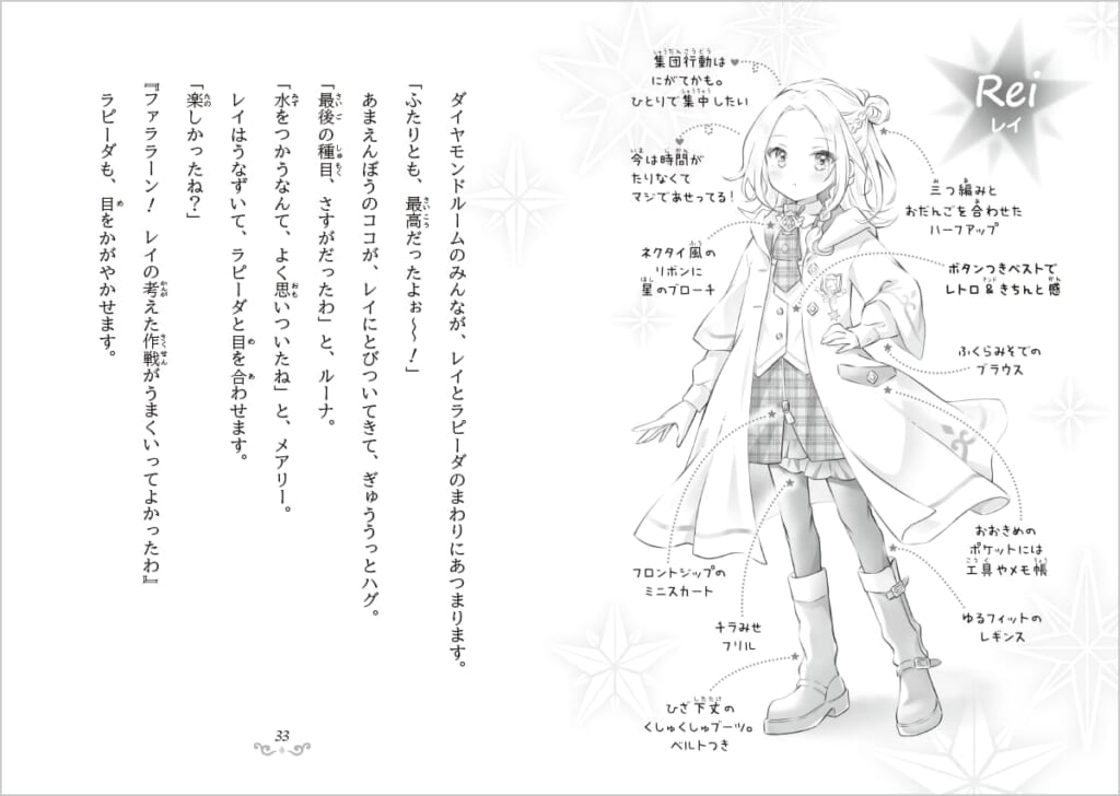 「主人公のレイは自分の価値観や世界観をしっかり持っていて、運動も勉強も器用にできる子。一見クールでとっつきにくそうだけど、距離感をうまくとれば仲良くなれそう。変に踏みこみすぎてしまうと嫌われてしまいそうなタイプです。なんでもできるけど、それを自慢したいわけではないので、仕草などは、はつらつすぎず凛とした感じをめざしました」
