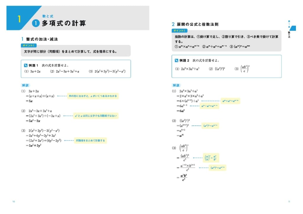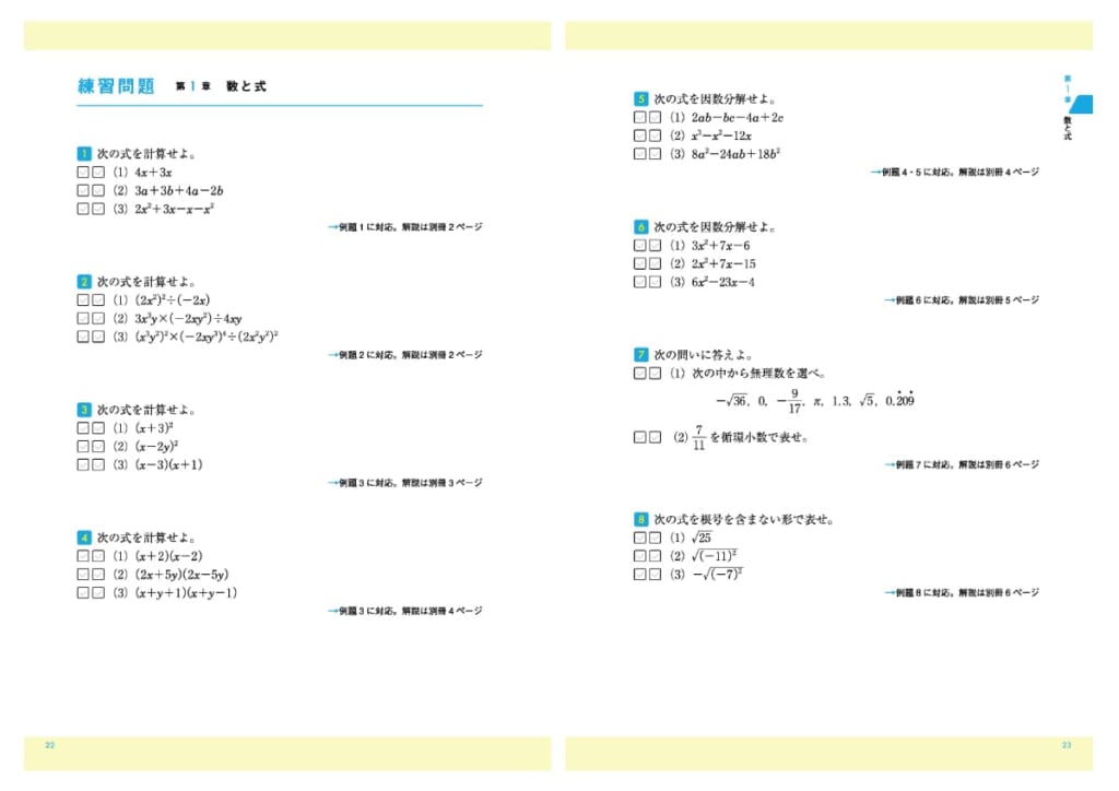 数学は「要点まとめ」と「例題」でポイントを押さえたあとに「練習問題」で着実に演習します。