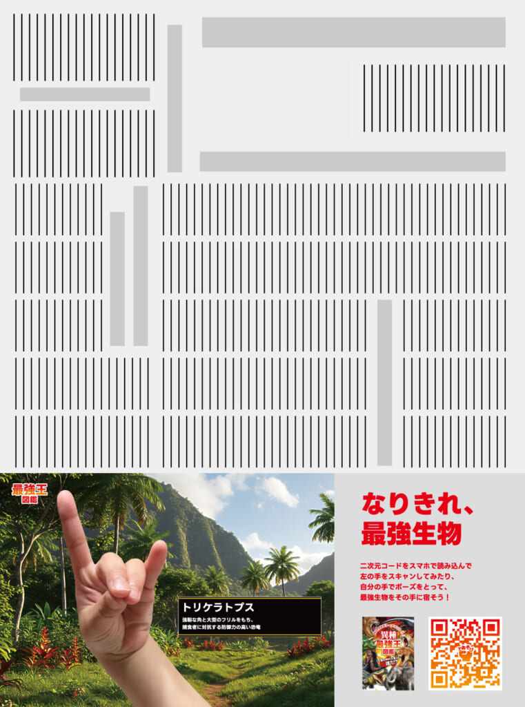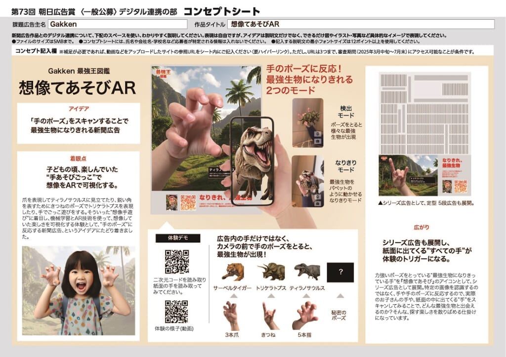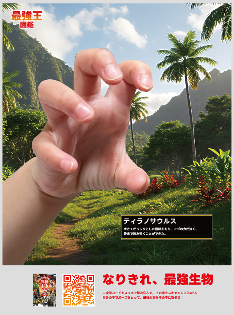 当時の写真を見返したとき、フォトブースで子どもたちが「ガオー!」と手遊びをしながら、恐竜になりきっていた様子を見て、今回の広告の内容を思いつきました。