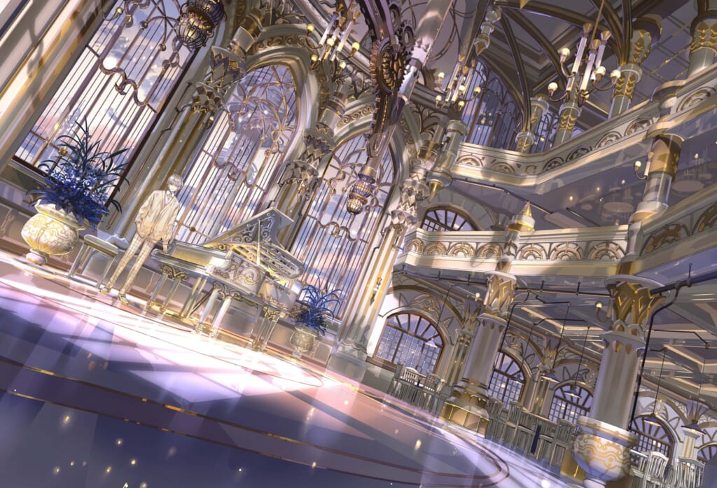 ▲コリットの学校である「リンドラングー」のラウンジ。陰影の表現や、細部まで描きこまれたデザインは六七質氏ならでは。