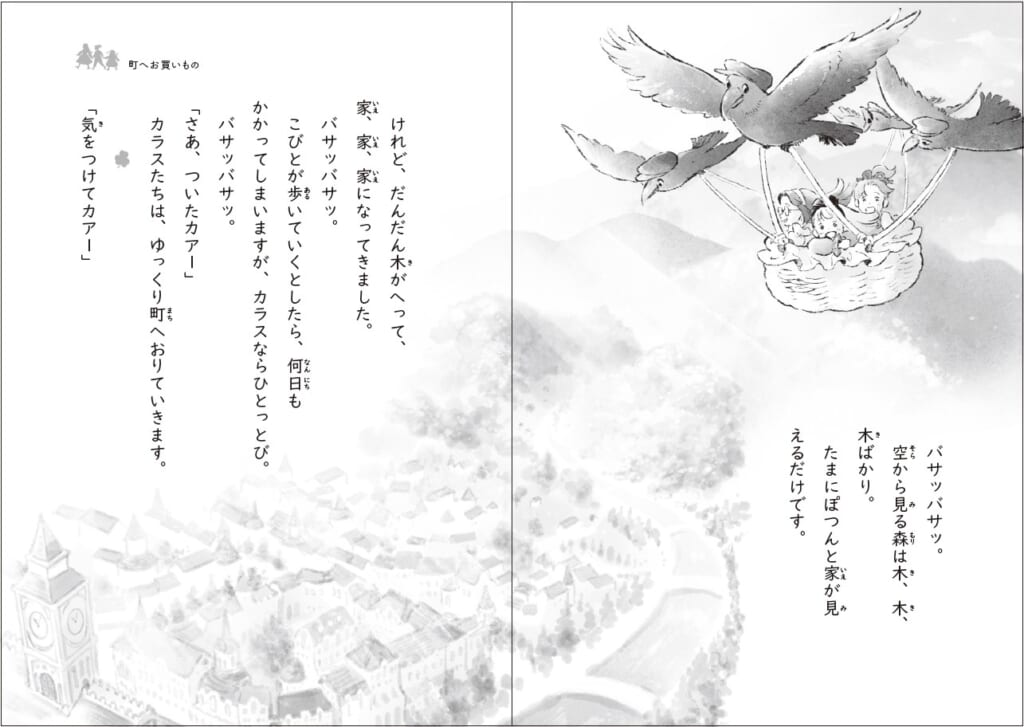 楠章子氏による、やさしく美しい言葉で書かれています。一文が短く、読みやすいため、読み物デビューに挑戦したいお子様にぴったりのグレードになっています。