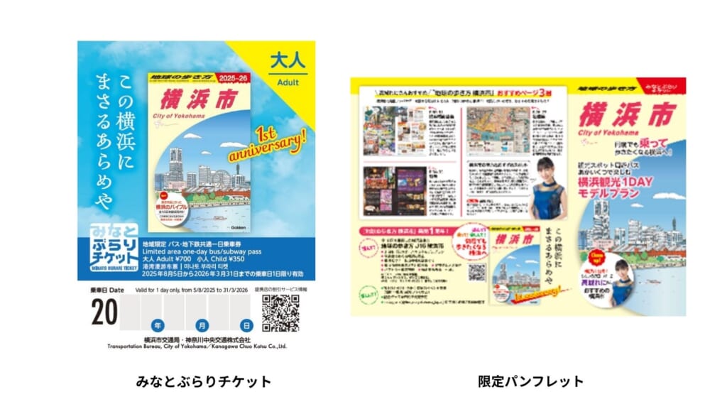 8月5日(火)には、高城れにさんおすすめコメントや「地球の歩き方」が考えた横浜観光1DAYモデルプランが掲載された限定パンフレット付きの「みなとぶらりチケット」を発売します。『地球の歩き方 横浜市』限定デザインの「みなとぶらりチケット」を使って横浜の魅力を再発見してください。