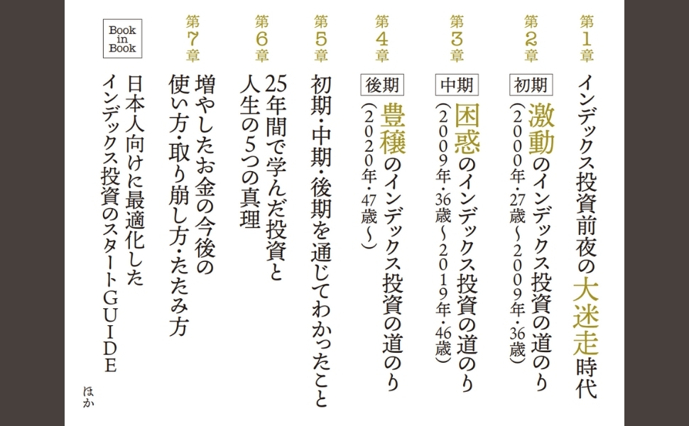第Ⅰ部では、著者の投資体験を初期、中期、後期のストーリー形式でお伝えします。第Ⅱ部では、それらの体験から導き出された教訓と実践的なアドバイスを理論的な裏付けとともに紹介しています。Q&A編では、水瀬氏のブログ「梅屋敷商店街のランダム・ウォーカー」の読者から寄せられた多くの質問にお答えしています。