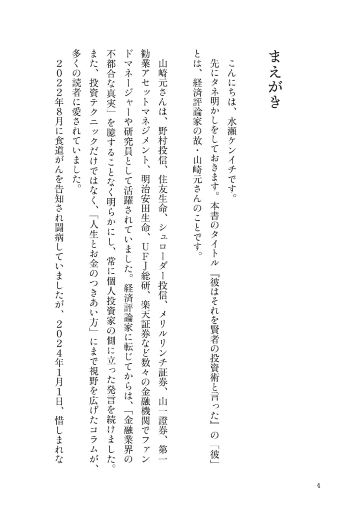 ▲まえがきでは山崎元さんとの出会いが語られています。
