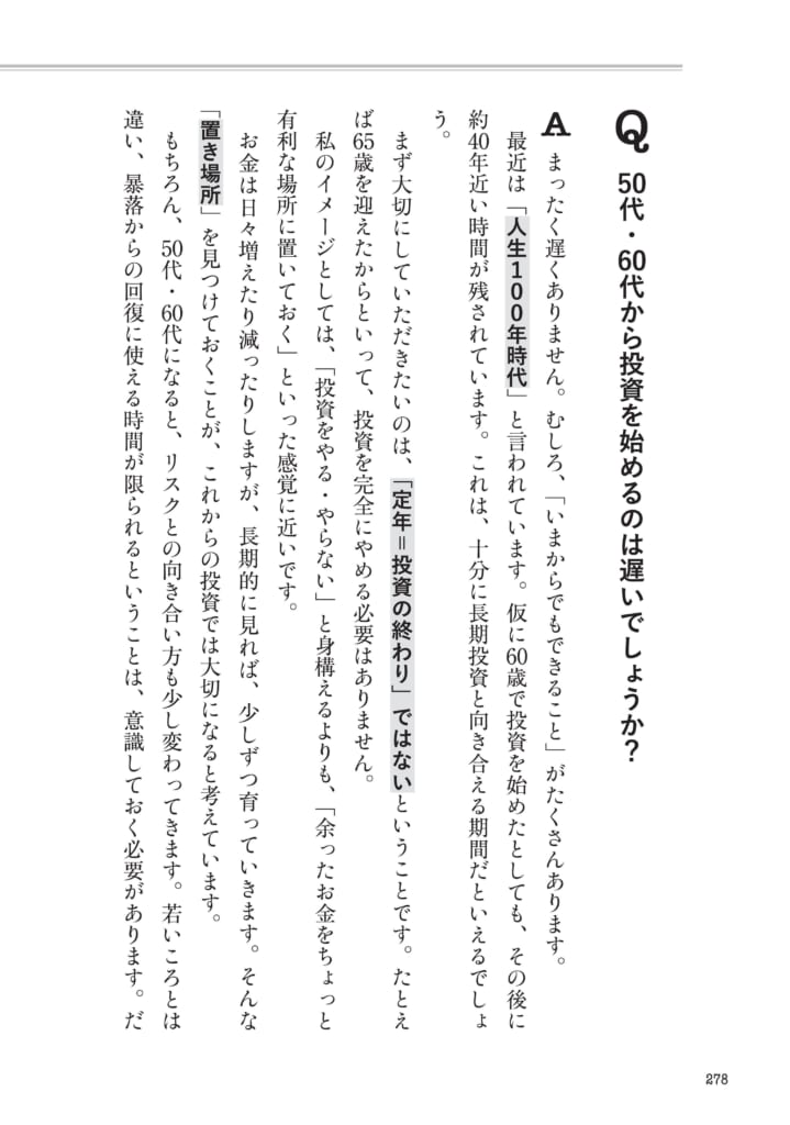 「投資はいくらから始めたらいい?」「50代・60代から投資を始めるのは遅いでしょうか?」といった読者からの質問に本音でお答えする。