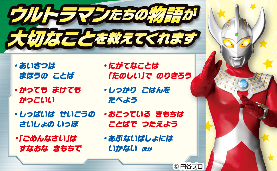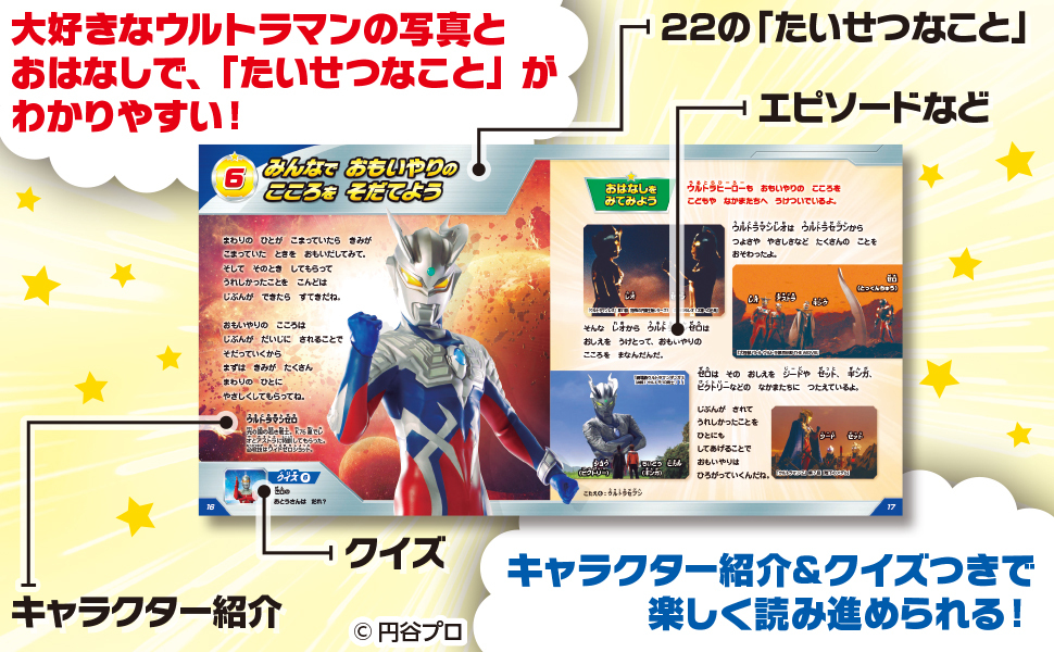 ウルトラマンが教えてくれる22の大切なことは、玉川大学乳幼児発達学科教授 大豆生田啓友先生の監修のうえで選定。
