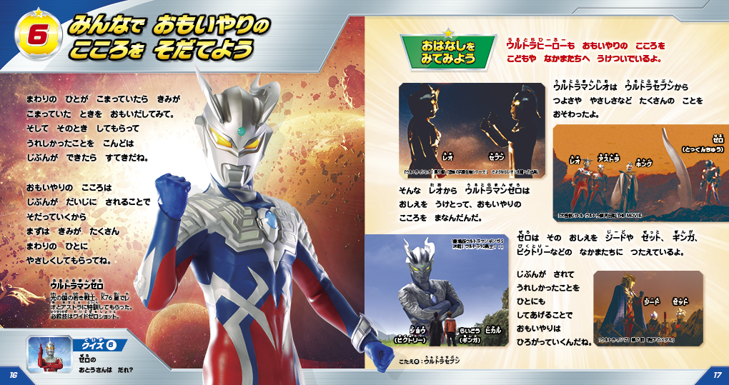 ウルトラヒーローのキャラクター紹介つき。名前だけでなく、特徴や必殺技を紹介しているものもありますので、キャラクター図鑑としてもご活用いただけます。