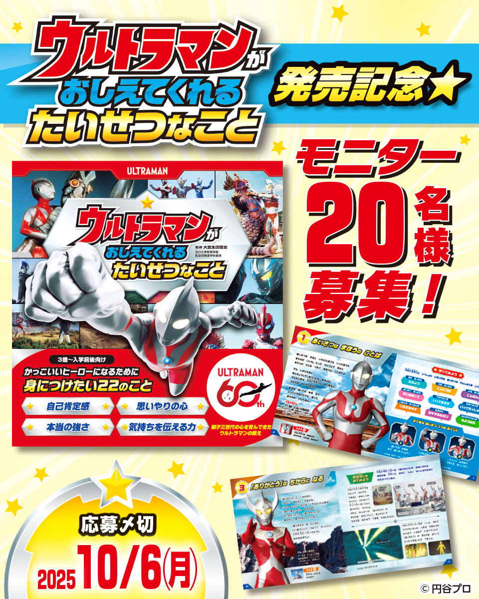 ウルトラマンの写真とお話で、「たいせつなこと」を楽しく学べる一冊です。この機会にぜひご応募ください。