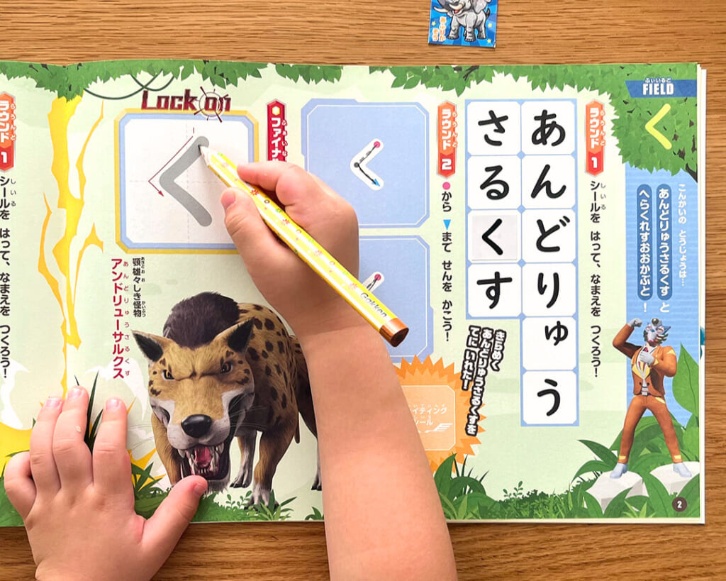 1ページ頑張ったら、キラキラの「ファイティングシール」をゲット! 達成感と自己肯定感を育みます。シールイラストはドリル限定の描き下ろし!