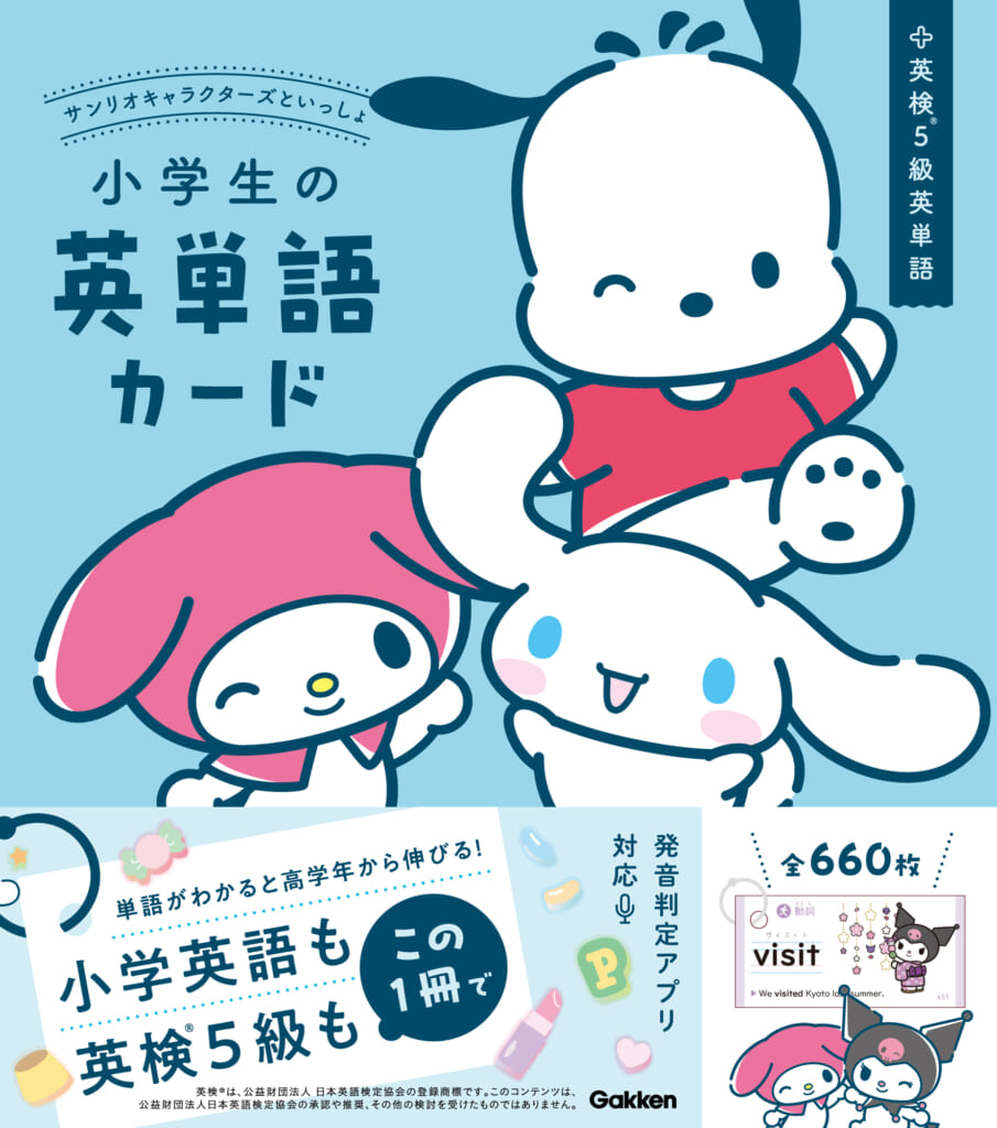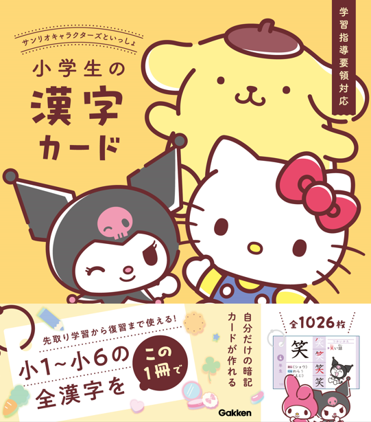 ポムポムプリン、シナモロール、ハローキティ、クロミ、ポチャッコ、マイメロディ……サンリオキャラクターズといっしょに、小学生のうちに覚えておきたい英単語と小学漢字を学べるカードタイプの参考書が登場しました。