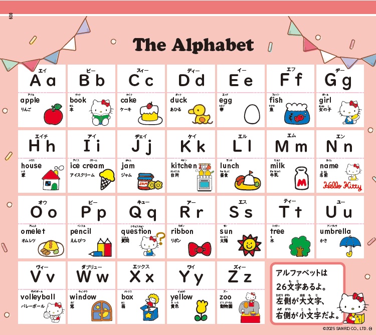 英単語や漢字はくり返し何度も目にすることが肝心です。全英単語・全漢字にサンリオキャラクターズのかわいいイラスト入り。かわいい姿や、くすっと笑える姿など、キャラクターの魅力あふれるイラストが満載なので、「持ち歩きたい!」「もっと見たい!」となること間違いなしです!