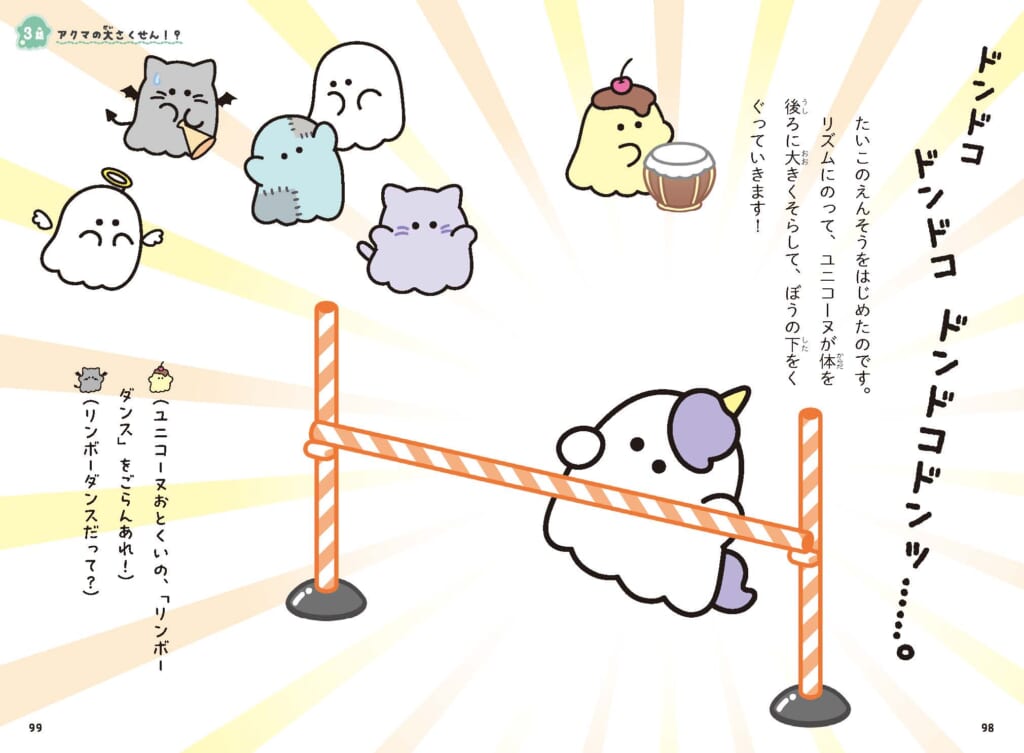オバケーヌたちの世界が舞台のお話は、本書で初めて公開されます。個性豊かなオバケーヌたちの性格や、知られざる一面をたっぷり楽しめます。お話の冒頭はまんがになっていて、物語の世界観に入りこむことができます。
