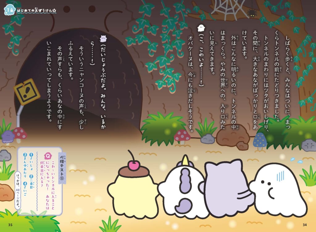 お話を読みながら遊べる心理テストや、その日の運勢をうらなう「今日のオバケーヌうらない」など、繰り返し遊べる要素も入っています。