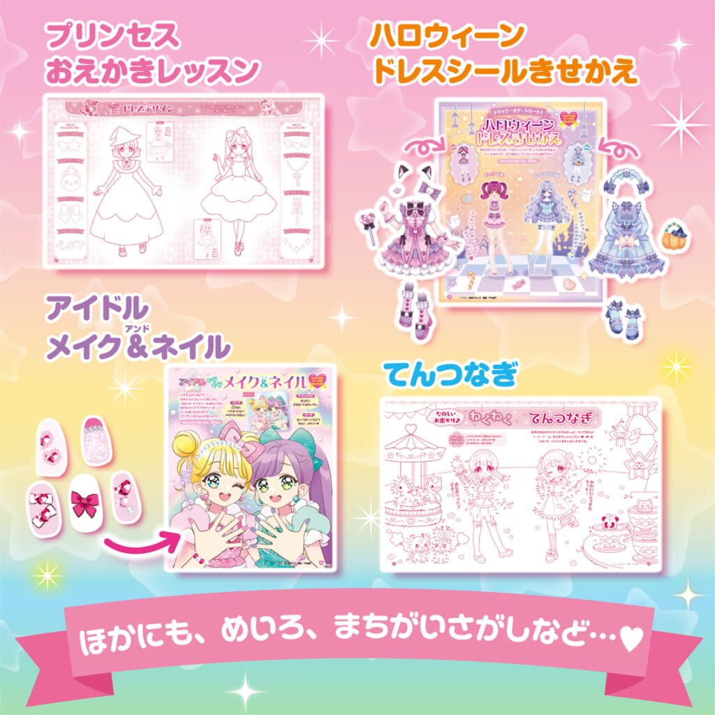 さらに、誌面では、かわいい女の子がかけるようになるおえかきレッスン、大人気のシールきせかえ、本誌初登場のキャラクター「シークレット キャッチ! ティニピン」や「プリンセッションオーケストラ」のあそび企画など、時間を忘れて夢中になれる記事が盛りだくさん!