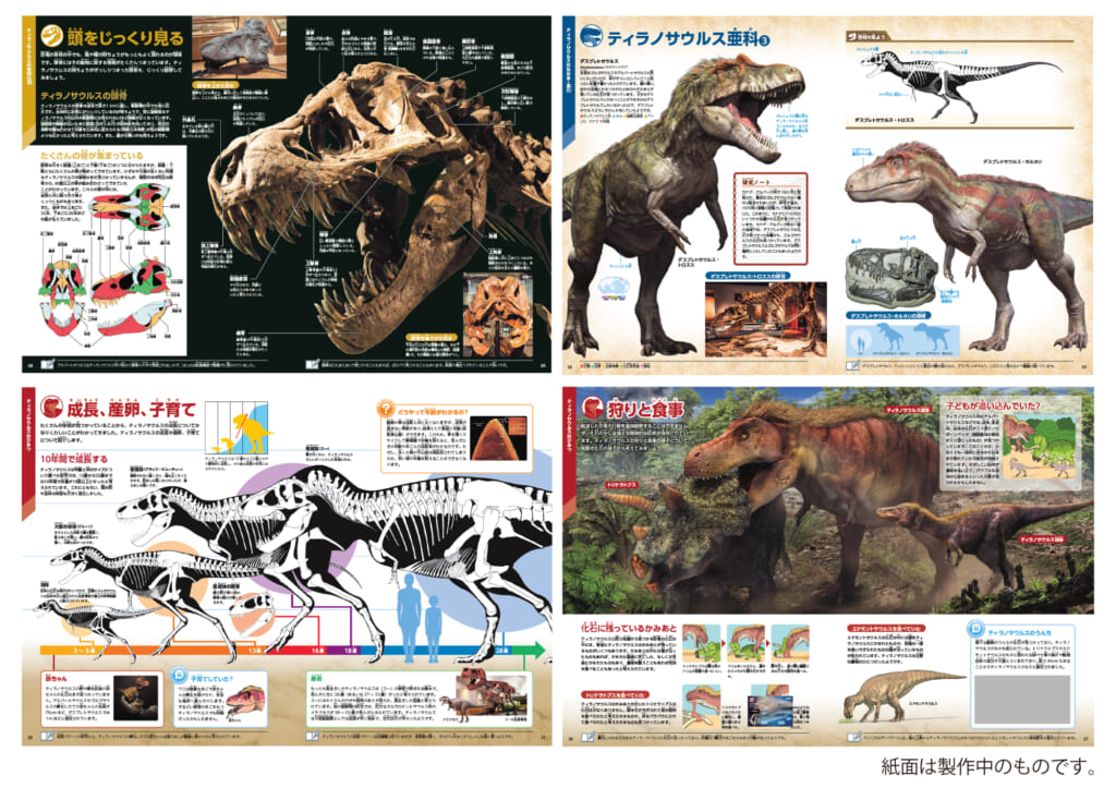 また、ティラノサウルスのなかまを約30種紹介し、進化の流れを解説。2025年6月に報告されたばかりの新種「カンクウルウ」も、学習図鑑で初めて※掲載します。また世界の有名標本などの化石写真を多数掲載。普通の恐竜図鑑では見ることができないティラノサウルスの姿が満載の1冊です。