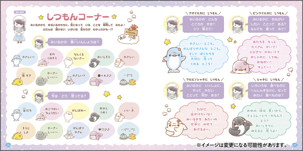 ●みいるかから、ゆるいるか達への質問コーナーや、ゆるいるかの日常がのぞけるショートストーリーなども充実!