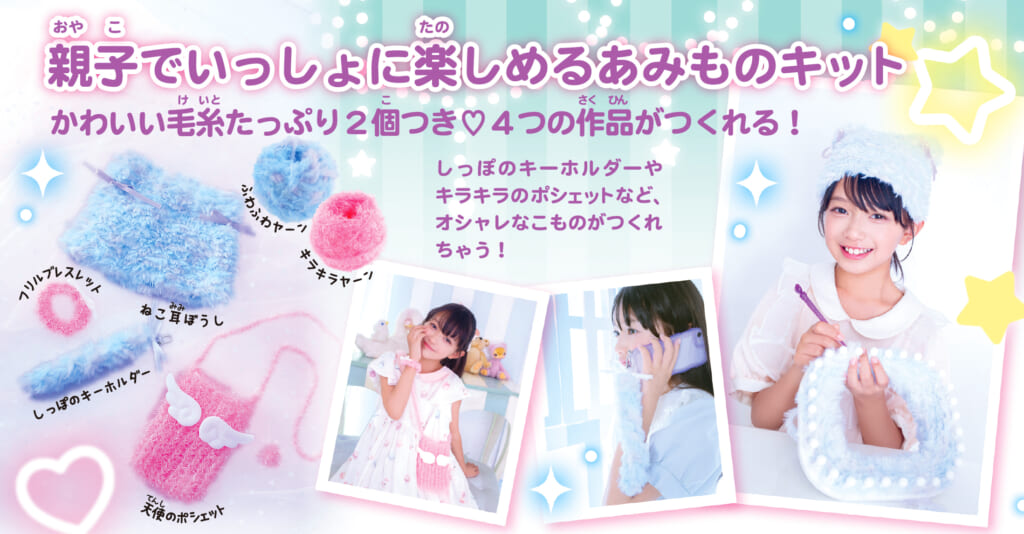 シリーズ累計部数58万部超の「ガールズクラフト」に、ふわふわキラキラの毛糸がついた編み物キットが登場!