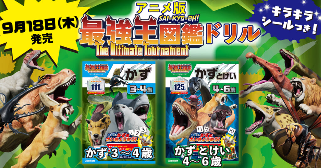【新発売】大好評のアニメ『最強王図鑑』ドリルシリーズに「かず」が仲間入り! かずの最強王を目指して、モ~~ストファイッ!