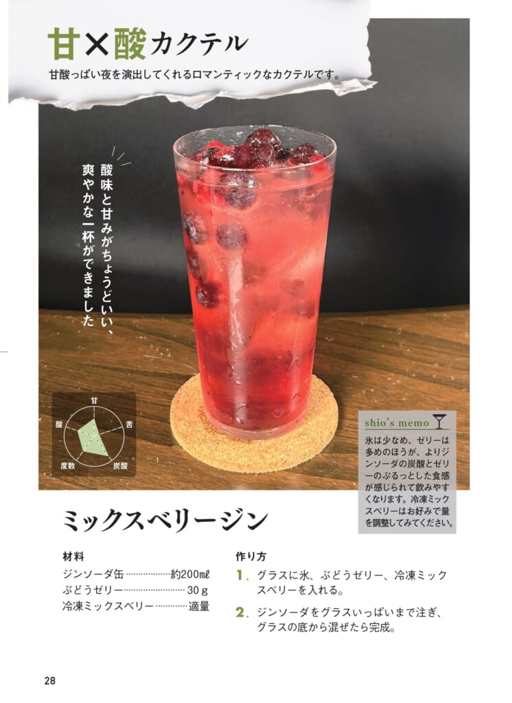 著者のしお【家飲み職人】は、簡単アレンジカクテルのリール投稿で話題を集める、型破りなインスタグラマ―。彼にかかれば、グラスに氷とコンビニのゼリーを入れ、缶チューハイを注いで混ぜるだけで、立派な「カクテル」が完成します。