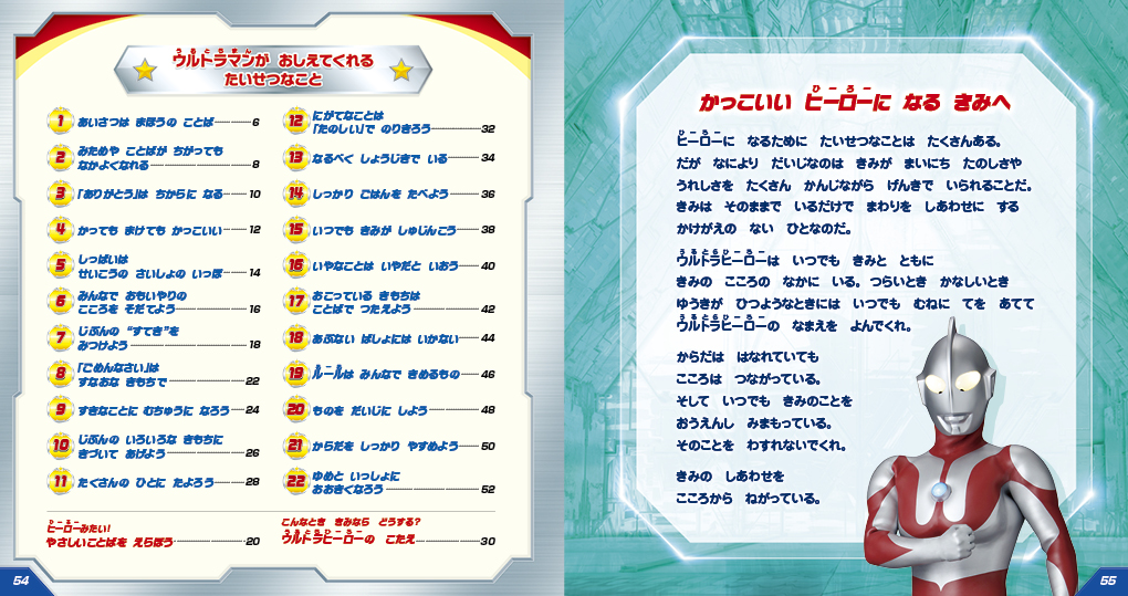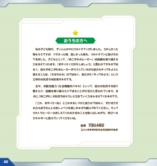 ウルトラマンが教えてくれる22の大切なことは、玉川大学乳幼児発達学科教授 大豆生田啓友先生の監修のうえで選定。