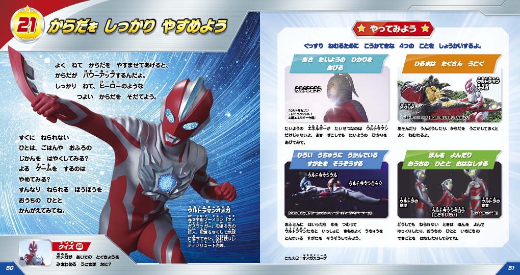 ウルトラヒーローのキャラクター紹介つき。名前だけでなく、特徴や必殺技を紹介しているものもありますので、キャラクター図鑑としてもご活用いただけます。