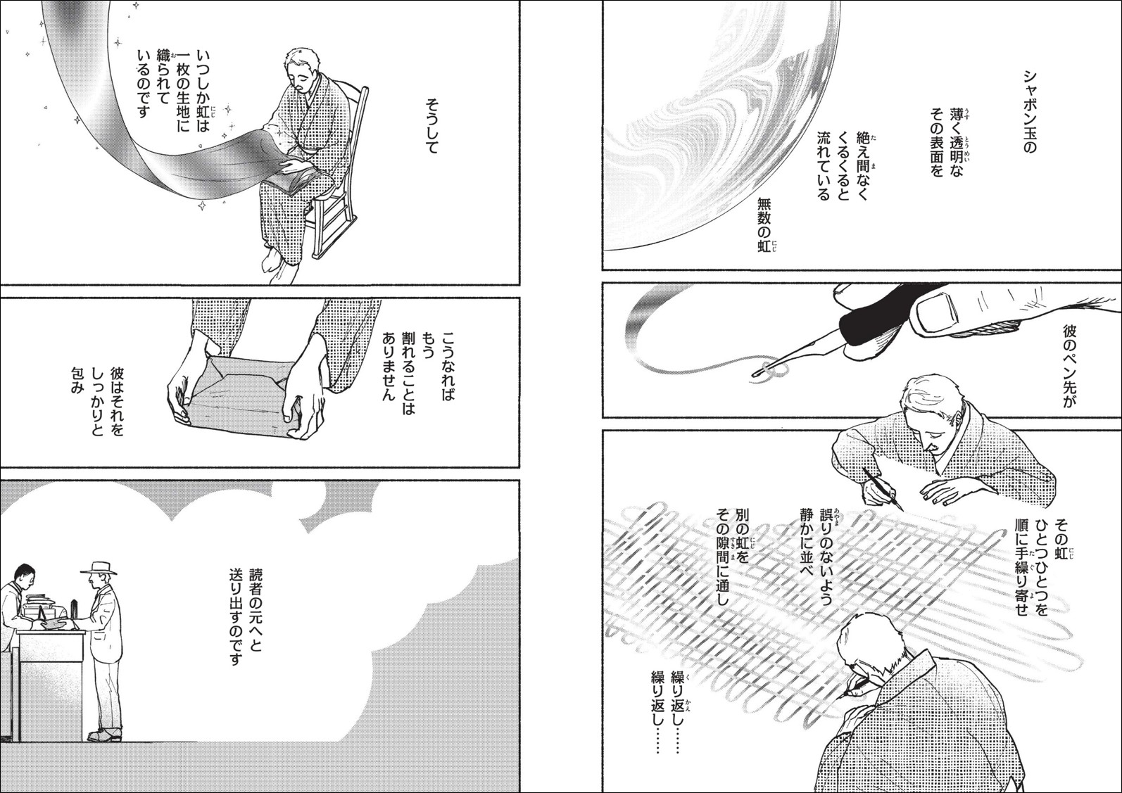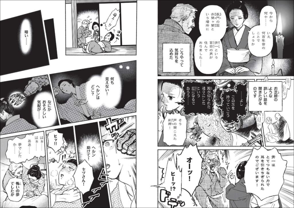 本書は二人の出会いや暮らし、そしてどのように物語を紡いでいったのかをマンガで紹介しています。言語や文化、出自の全く異なる二人が、怪談によって心を通わせ夫婦となり、互いを尊重しながら仲睦まじく暮らす様子は、読んでいて心が温まります。