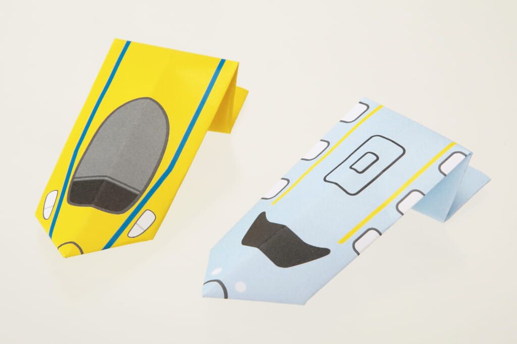 おしりを押すとぴょんぴょんはねる! オリジナルの新幹線をつくれる折り紙です。