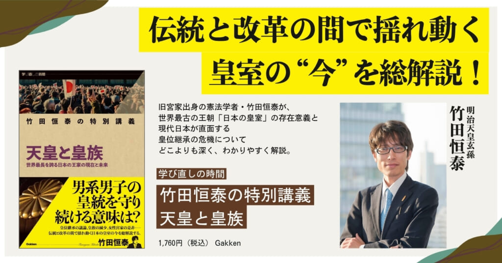 皇位継承の議論、皇族数の減少、女性宮家の是非……。皇室を取り巻く最新の論点を、旧宮家出身の憲法学者・竹田恒泰がどこよりも深く、わかりやすく解説します。