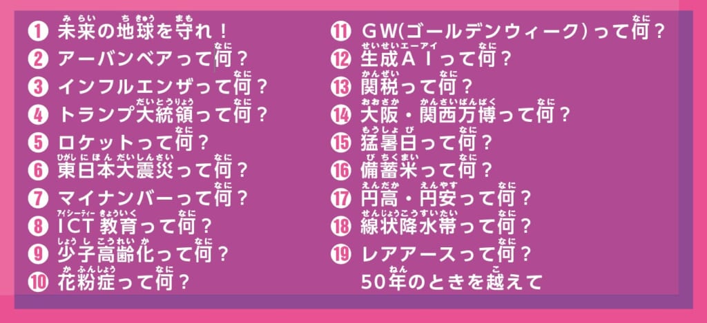 毎日、テレビやネットで流れてくるたくさんのニュース。技術の進歩で、さまざまなできごとが、ほぼノータイムで世界に広まるようになりました。でも、英語をそのまま使った横文字や略称、難しい専門用語が説明なしにポンポン出てくると、なんだか取り残されたような気持ちになりますね。「なんとなく…こういう意味かな?」「似ていることばなら知っているけど……」なんていう人も多いはず。