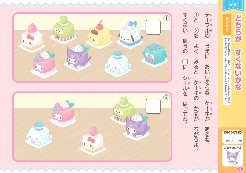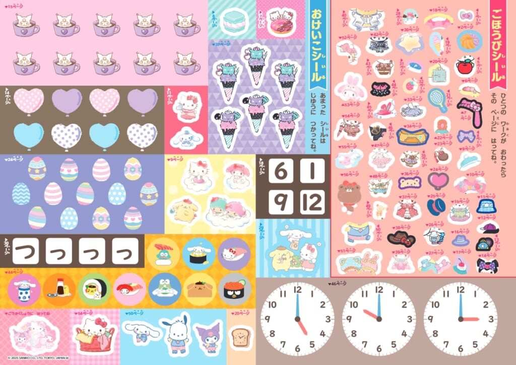 入学前に学んでおきたい「もじ・かず・とけい」の三単元を、かわいいサンリオキャラクターズといっしょに楽しみながら学習できます。