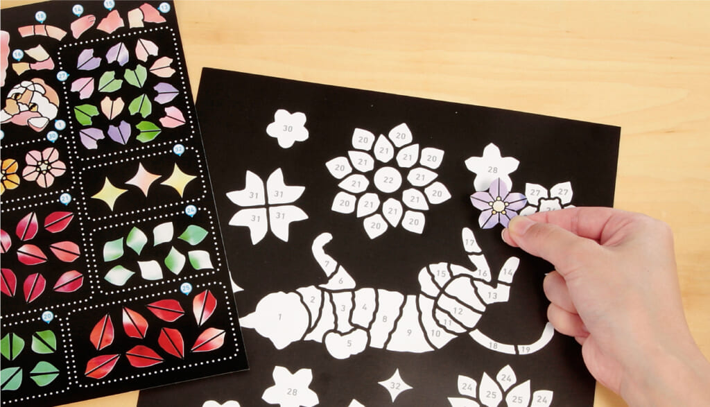 シールをはがして貼る作業や、枠と同じ番号のシールを探す作業が、脳活にぴったりです。
