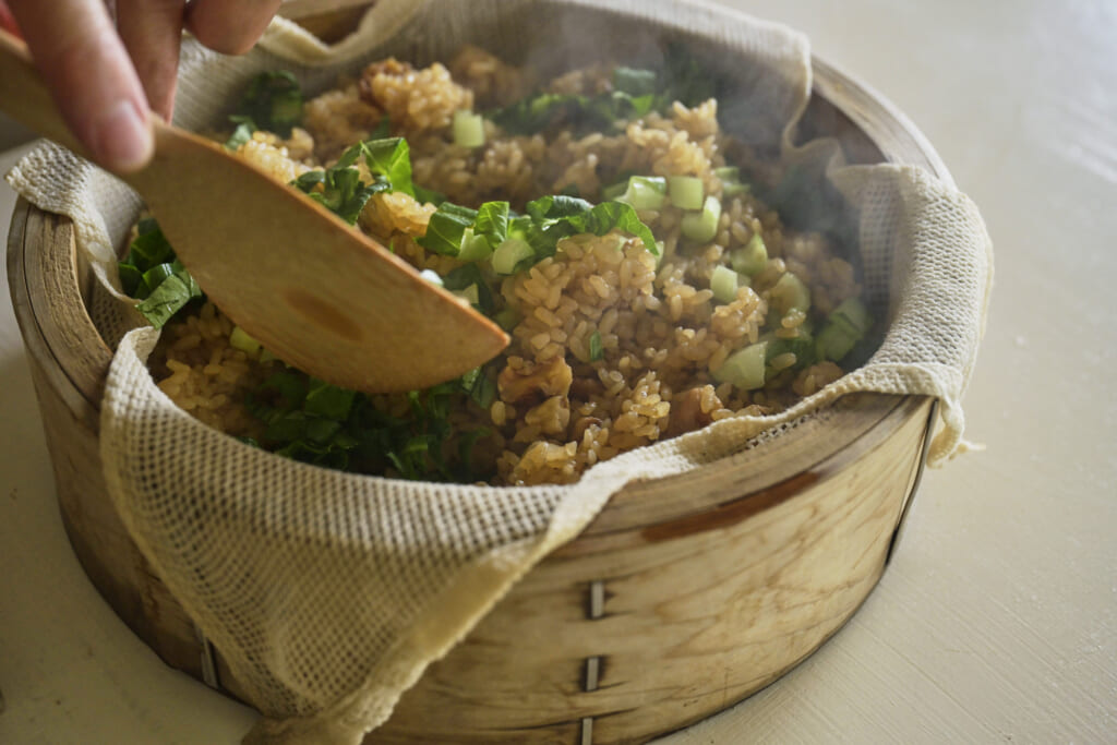 五目おこわ/くるみと小松菜のみそおこわ/にんじんとひよこ豆の洋風おこわ/きのこのおこわ/アボカドの蒸しずし/さばの蒸しずし